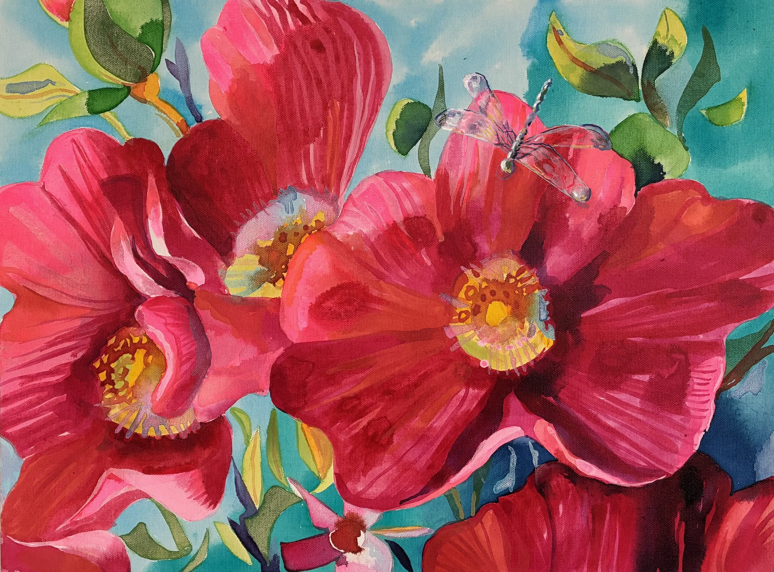 The image above “Messenger of Joy” 18x24 painting was completed and the two images below.